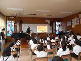 急遽、朝学習は音楽室に全校が集まって、お話を聴くことになりました。