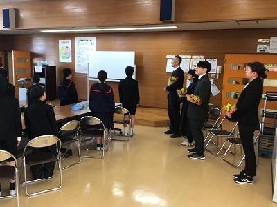 映画鑑賞の後、卒業生のみなさんから在校生のみなさんに、