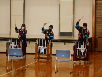 太鼓指導者の方から、「失敗をおそれないで、太鼓が破れるぐらい力強く、思い切りたたく」ことが大切というアドバイスをいただき、練習に励んでいます。