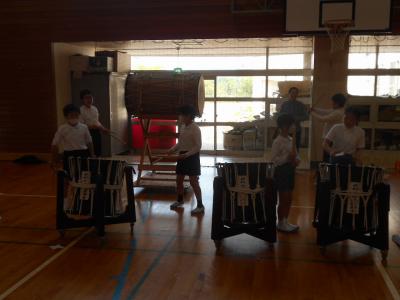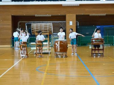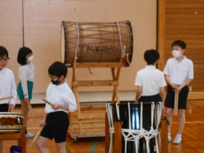 来月の音楽会に向けて、5限に3~6年生は太鼓練習をしました。