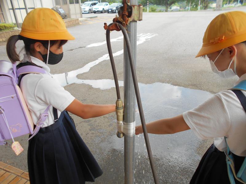 プールに入っていた1~3年生も、さっとプールから上がって自分の身を守っていました。