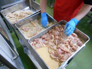 下味をつけた豚肉に1つ1つ衣をつけていきます。