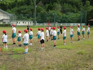 2限目に、全校児童で運動会の全体練習をしました。今まで運動会の練習を、低学年、高学年それぞれで行っていました。全校児童が集まっての練習は今日が初めてです。