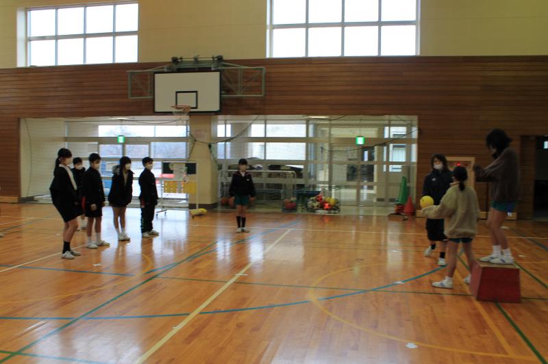 体育館でバレーボール、ドッチビー、だるまさんが転んだをしました。隣で2・3年生もお楽しみ会をしていました。