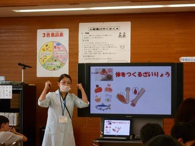 赤、黄、緑の食べものはどのような役割があるのかの説明があり、それぞれの栄養の大切さについて学びました。