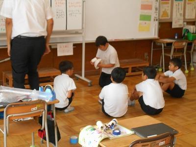 3年生は「顔を出したらなんだかワクワク」4年生は「おもしろダンボールボックス」の制作をしていました。