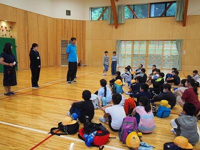 「あいさつ津幡一!」を謳うわたしたち萩野台小の1,2年生。バスで出会った笠野小のお友だちにも、会場を準備をして待っていてくれた刈安小のお友だちにも、寺尾保育園のお友だちにも元気よくあいさつができました。