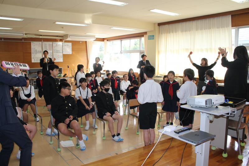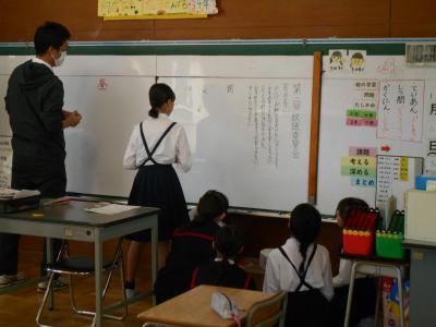 5時間目は4年生の外国語の授業に他の学校から先生方が見にいらっしゃいました。