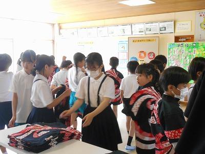 3・4・6年生や先生に教えてもらいながら、一生懸命運んでいます。