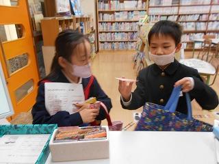 図書館で本を借りたらおみくじが引けます。引いたおみくじは、そのまま、しおりになるもので、図書館司書の先生が作ってくださいました。「大吉が出た!3冊借りれる‼」と喜ぶ姿も見られました。