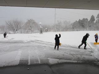 朝、学校前の雪かきをしてくれました。積もった雪に喜びながら取り組んでいました。ありがとう!
