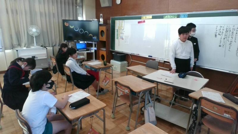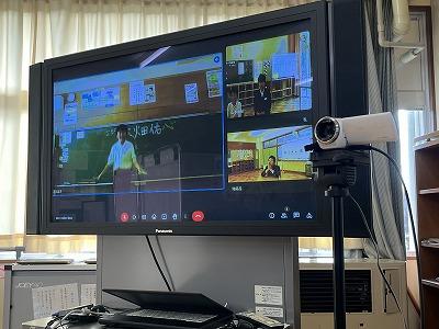 教室の大型テレビには、三校のそれぞれの教室の様子が映し出されていましたが、どの学校も練習したり、準備したりした成果を存分に発揮し、交流をとっても楽しんでいました。