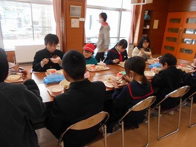 5・6年生が育てたもち米を使って、地域の方から杵と臼をお借りして、ランチルームでもちつきを行いました。