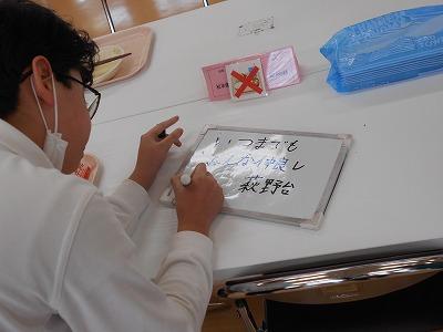 呼び掛けるお知らせを作っている児童がいました。自分の時間だけではなく、