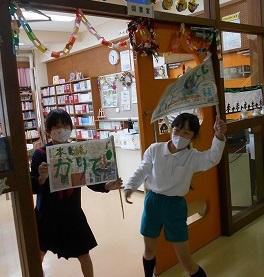 自分の好きな本を読んでいる児童、図書室の利用してくれる萩野っ子を増やそうと
