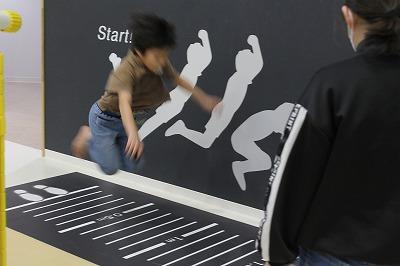 運動場に作られた特設道路をみんなで歩いた後は、ひとりずつ歩いてみました。