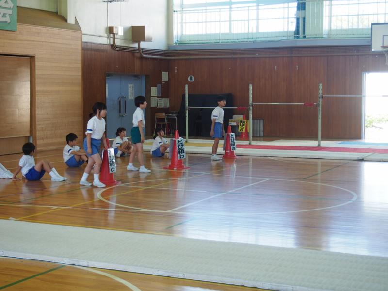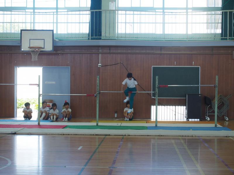 笠野小学校で器械運動交歓会にむけての合同練習が行われました。