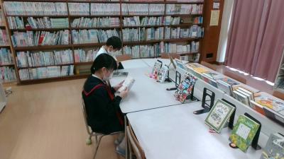 自分の好きな本を読んでいる児童、図書室の利用してくれる萩野っ子を増やそうと