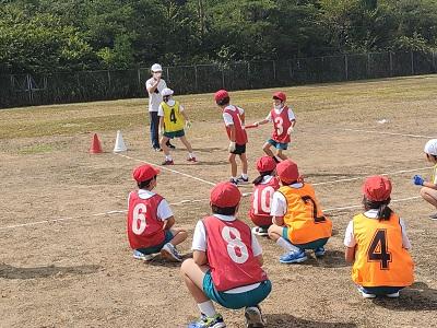 子供たちは、狙ったところまで届くようにボールを蹴ったり、相手の動きを見て、次はどこに動けばよいのか考えたりしながら学習に取り組んでいます。