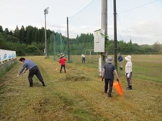 昨日PTAの皆様による草刈りを行いましたが、今日の午前中、刈り残した場所やフェンス際の場所などを、公民館館長の大西さん、地域の小山さんに刈っていただきました。いつも、ご協力いただきありがとうございます。