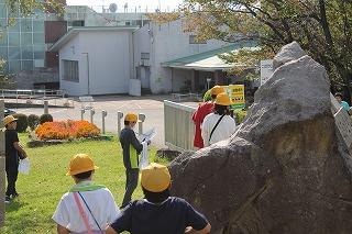 今日観察しての児童は、「正午のかげは短かったけど、正午を過ぎてからのかげは長くなっていたよ」、「次(1時間後)の太陽の位置がわかるよ」、「東と南の間にあった太陽が南を通り西側に変わっていくよ」と話していました。