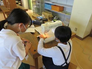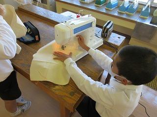 はじめに、手縫いとの違いを確認し、「下糸のまき方」、「上糸のかけ方」、「下糸の入れ方・引き出し方」、「縫い方」、「縫う方向のかえ方」を学習しました。