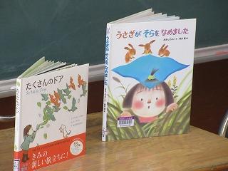 読んでいただいた本は、「たくさんのドア」と「うさぎがそらをなめました」です。自然とお話の中に入り込んでいるように聞いていました。読んでいただいた後に、感想を発表しました。