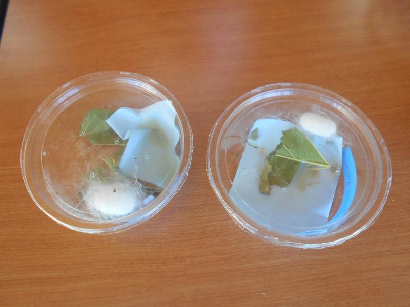 カイコの引き渡し会から10日ほど経ちました。津幡高校からいただいたカイコは、桑の葉をもりもりと食べて、元気にすくすくと育っています。