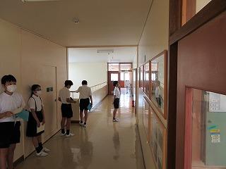 昨日に比べ、空には雲が多く、少しだけ風もありますが、まだまだ暑いです。暑さ対策として、体操服で下校します。