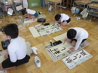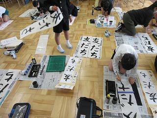 2・3限目に書き初め会を行いました。手本をしっかり見て、集中して書いていました。