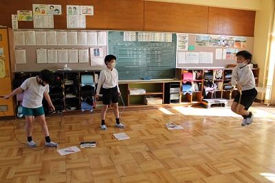 みんな長休みや昼休みの時間を使ってあらゆる場所でなわとびをしています。