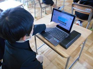 パソコン室で先生のお話をしっかり聞いたり、友達同士で助け合ったりして、お気に入りのデザインの下敷きを作成していました。