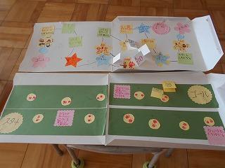 友達のキラリを見つけた人は、お花の形をしたキラリカードに書きます。そのカードを玄関前に置いてあるボードに