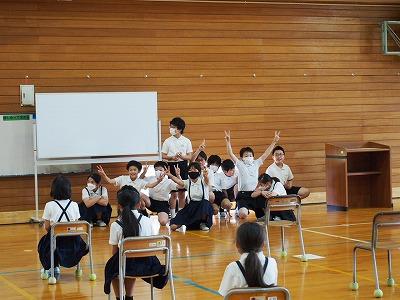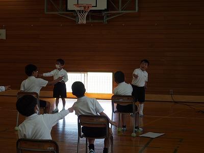 6月1日(木)の児童集会で運営委員会主催の「声出し大会」が行われました。
