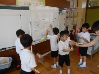 今年は運動会が10月の初めということで、運動会練習のための特別時間割は16日からなのですが、少しずつ準備を始めています。今月の歌は運動会の応援歌「ゴーゴーゴー」です。各クラスから元気な歌声が聞こえてきます。
