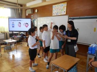 保健指導では、熱中症予防の観点から水分補給をテーマに話をしました。