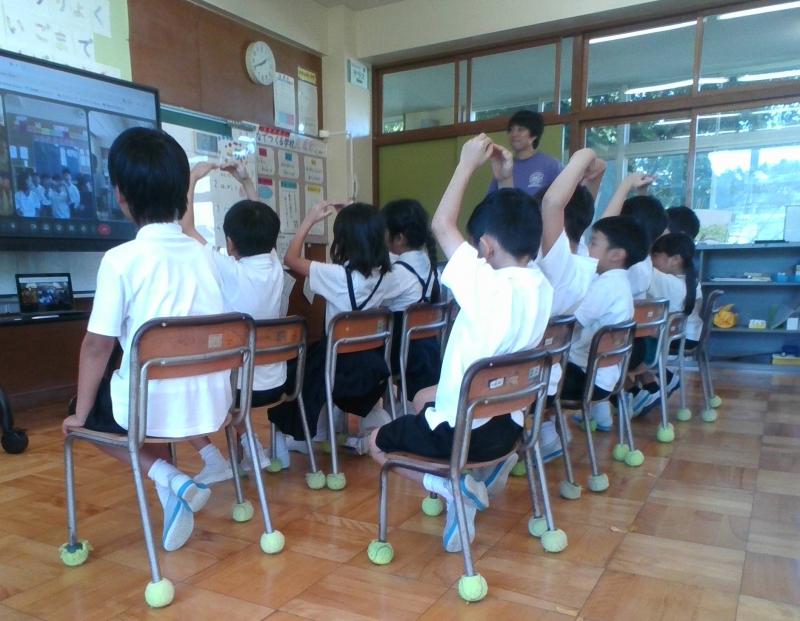 萩野台小学校、刈安小学校、笠野小学校の1・2年生で行う「あきまつり」に向け、3校でミートをつないで話し合いました。