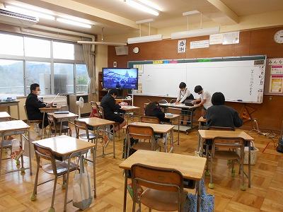 映画鑑賞の後、卒業生のみなさんから在校生のみなさんに、