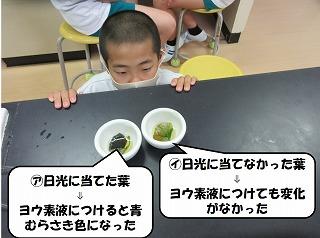 植物は葉に日光が当たるとでんぷんができることがわかりました。