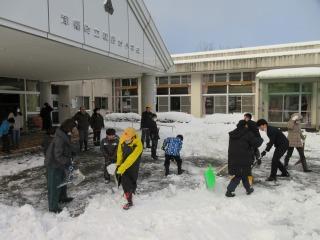 早く登校したみなさんは、進んで雪かきをしてくれました。ありがとう。