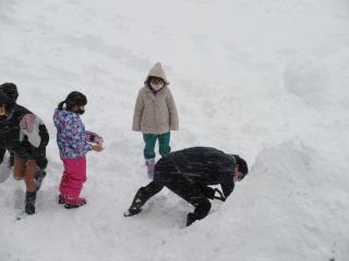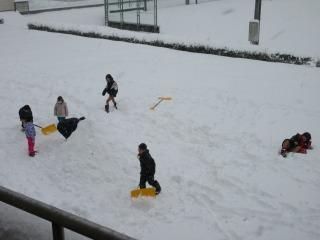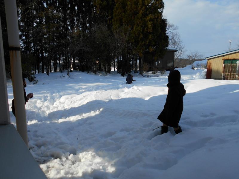 連休と大雪のための休校が開けて、久しぶりの学校となりました。窓にも届く様な積雪にびっくりしながらも積もった雪が嬉しそうな子どもたちでした。昼ゆとりの時間は雪遊びを楽しむ子供たちがほとんどでした。