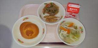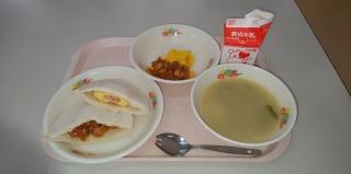 今日の給食は、揚げパンでした。子どもたちに大人気でした。