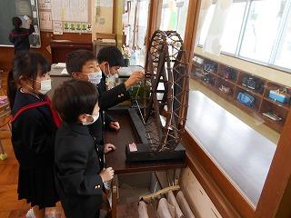 1年生の国語「たぬきの糸車」の学習で、町の歴史民俗資料収蔵庫から、糸車をお借りしました。