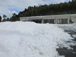 学校とコミュニティの間には、まだまだ雪が多く残っています。ご来校の際には、十分にお気を付けください。