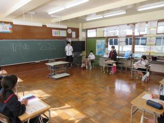 3限目、3年生は理科で、今までに学習したことを活かして作るおもちゃについて教頭先生から作品例を見せてもらい、どんなおもちゃにするか考えていました。空気を押し出す力や電気の仕組みを利用した「科学おもちゃ作り」に興味津々でした。その後は自分で黙々と作り始めていました。どんなおもちゃができるかとても楽みです。