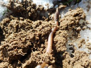 寒くなった冬はどのように変わってきたか調べました。サクラは葉がなく、枝先には芽が見られました。虫などの動物は、はじめのうちは全く見つかりませんでした。風の当たらないところやコンクリートブロックの下や土の中を探すと、生き物を見つけることができました。虫などの動物の数が減ってきた秋よりもさらに、減っていました。ハエも見つかりましたが、近づいても全く逃げようとせず、じっとしていました。