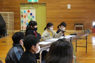 2、3限目に6年生を送る会がありました。5年生のみなさんが企画・運営をして開催しました。各学級が6年生に感謝をこめて、楽しんでもらおうと出し物を発表しました。6年生のみなさんからも楽しい出し物をしてもらいました。一人一人が、発表や運営の仕事をがんばりました。