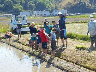 さわやかな晴天の下、5・6年生が田植え体験をしました。