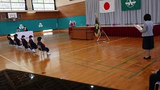 5名の一年生が入学しました。入学式では、名前を呼ばれると大きな声で返事をし、また、後ろに座っている2~6年生の方を向いて「よろしくおねがいします!」と話していました。2~6年生も新しい仲間ができて嬉しそうでした。