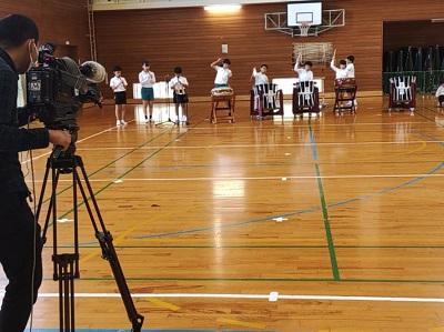 長休みの走ろう運動の様子を撮影した後、3限目からは太鼓、校歌、各学年の発表をしました。